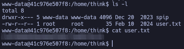 In think’s home directory you’ll find the same flag we found before.