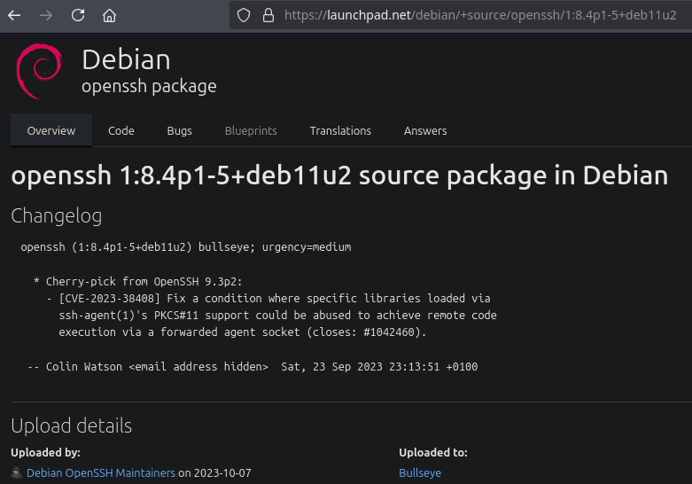 To figure out the Debian’s version codename we need to search in the internet the SSH version followed by ‘launchpad’.