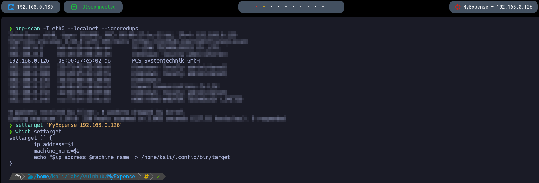 Once we identify the victim machine it would be optimal to use settarget to set the target IP in the Polybar.