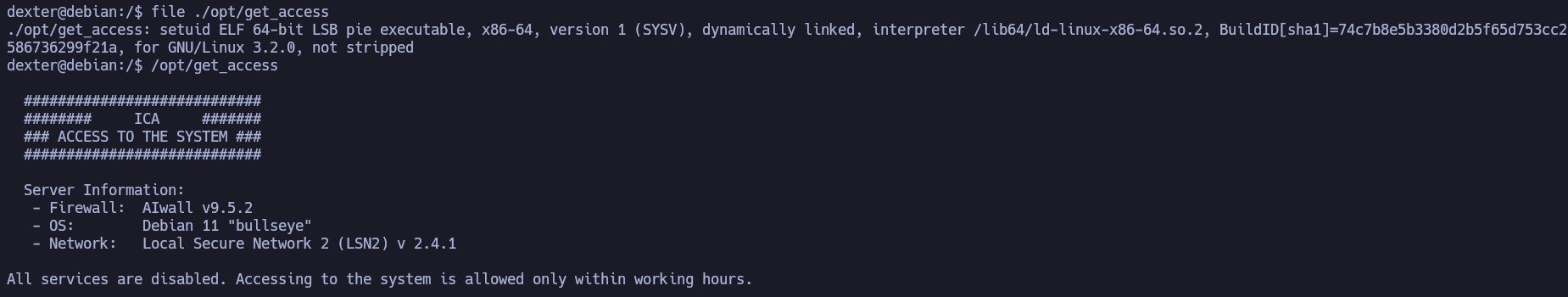 All services are disabled. Accessing to the system is allowed only within working hours.