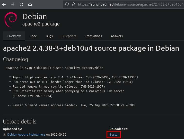 You can Google the Apache or SSH version followed by “launchpad” to get a good hint about the OS. You can also check the blog’s Enumeration Cheat Sheet, which includes a table mapping service versions to possible operating system versions. We are facing a Debian Buster.