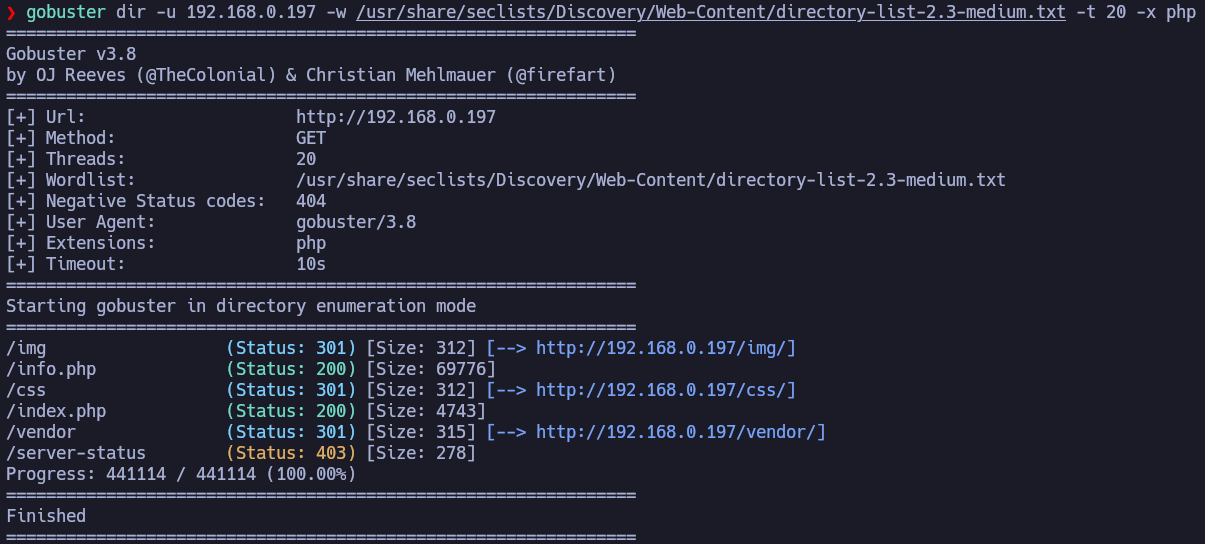 Let's focus on fuzzing and PHP file enumeration. We'll brute-force the website to list directories and files.