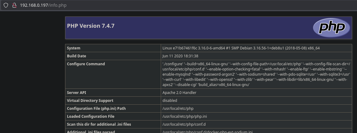We find out some directories and PHP files. We see the classic info.php wich is generated by the PHP function phpinfo(). This file exposes all PHP configurations.