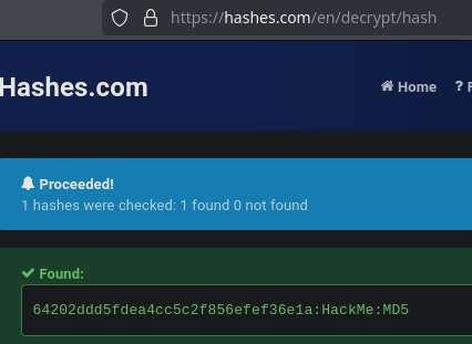 To finish this intrusion we have to crack the hash of our target pbaudouin. We will do it online: https://hashes.com