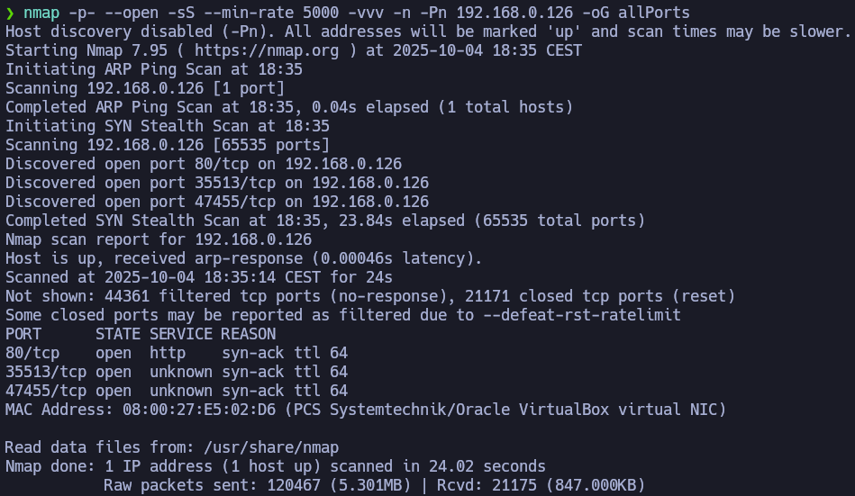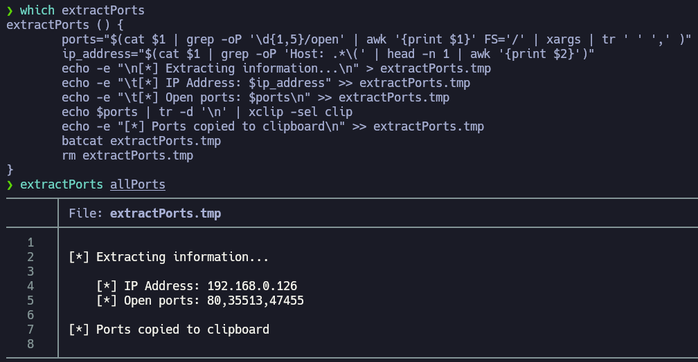 Now we will perform a port scan on the machine. To work in an organized way we will use the function mkt.