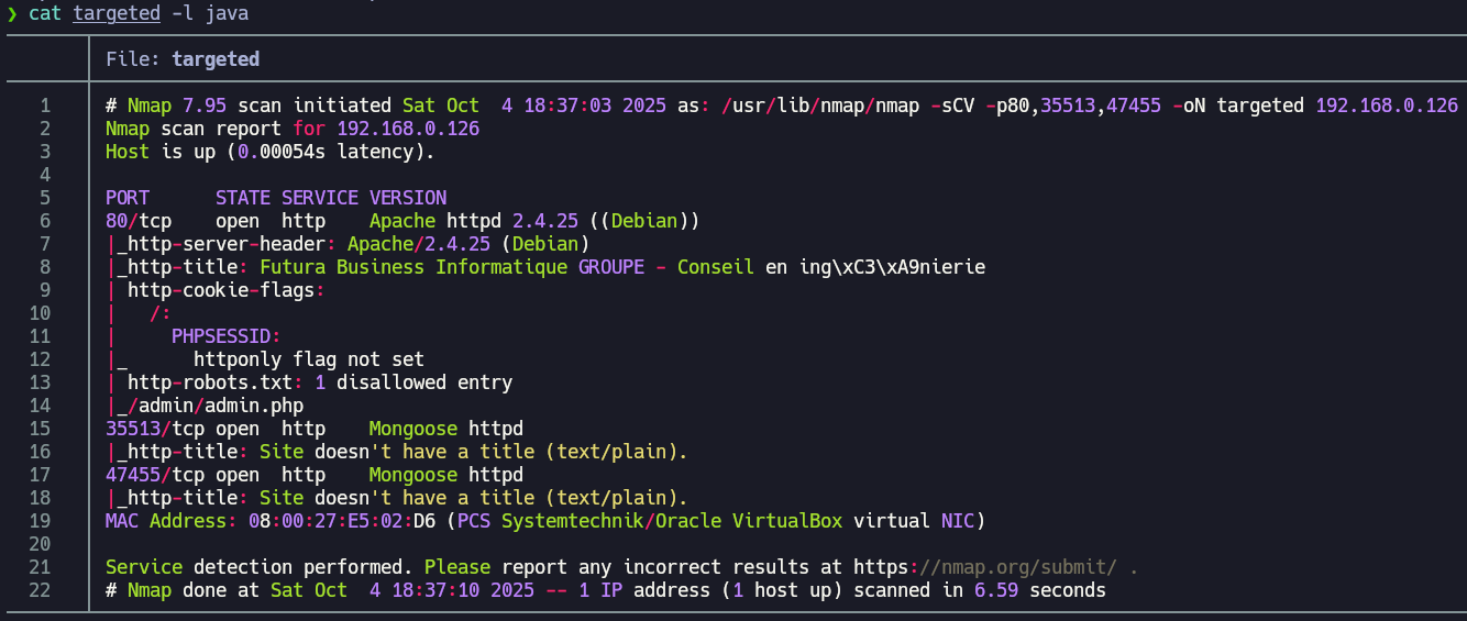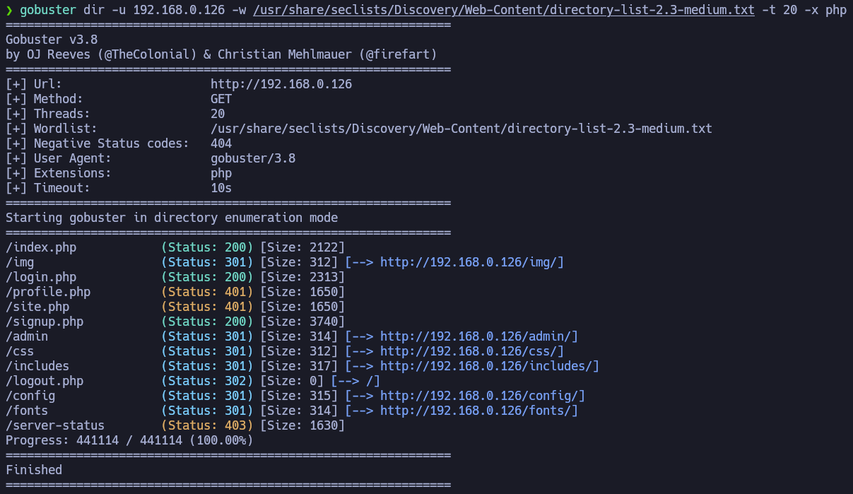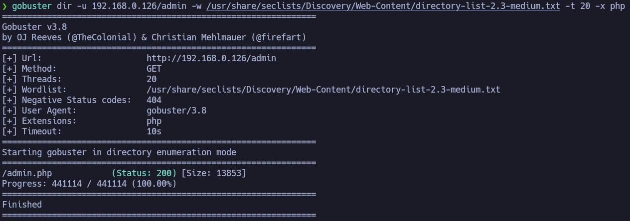 It detected several directories, among them it appears the admin panel at /admin. We will enumerate that directory, since accessing it returns Error 403 - Forbidden.
