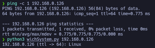 Once we identify the victim machine it would be optimal to use settarget to set the target IP in the Polybar. After identifying the target's IP address, we need to enumerate as much information as possible about the host. A quick way to get a hint of the OS is checking the TTL value from a simple ping to a host on our local network. ttl-ripper.sh can also be used for this purpose.